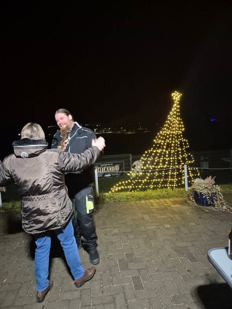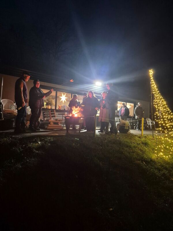 Abgerundet wurde dieser schöne Tag mit einem reich geschmücktem Tannenbaum, Feuerschale ,Knüppelkuchen, Räucherfisch und lecker gegrillter Bratwurst.